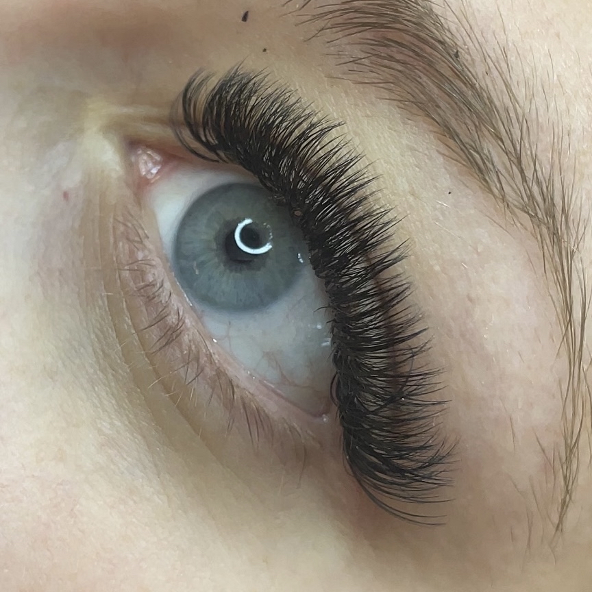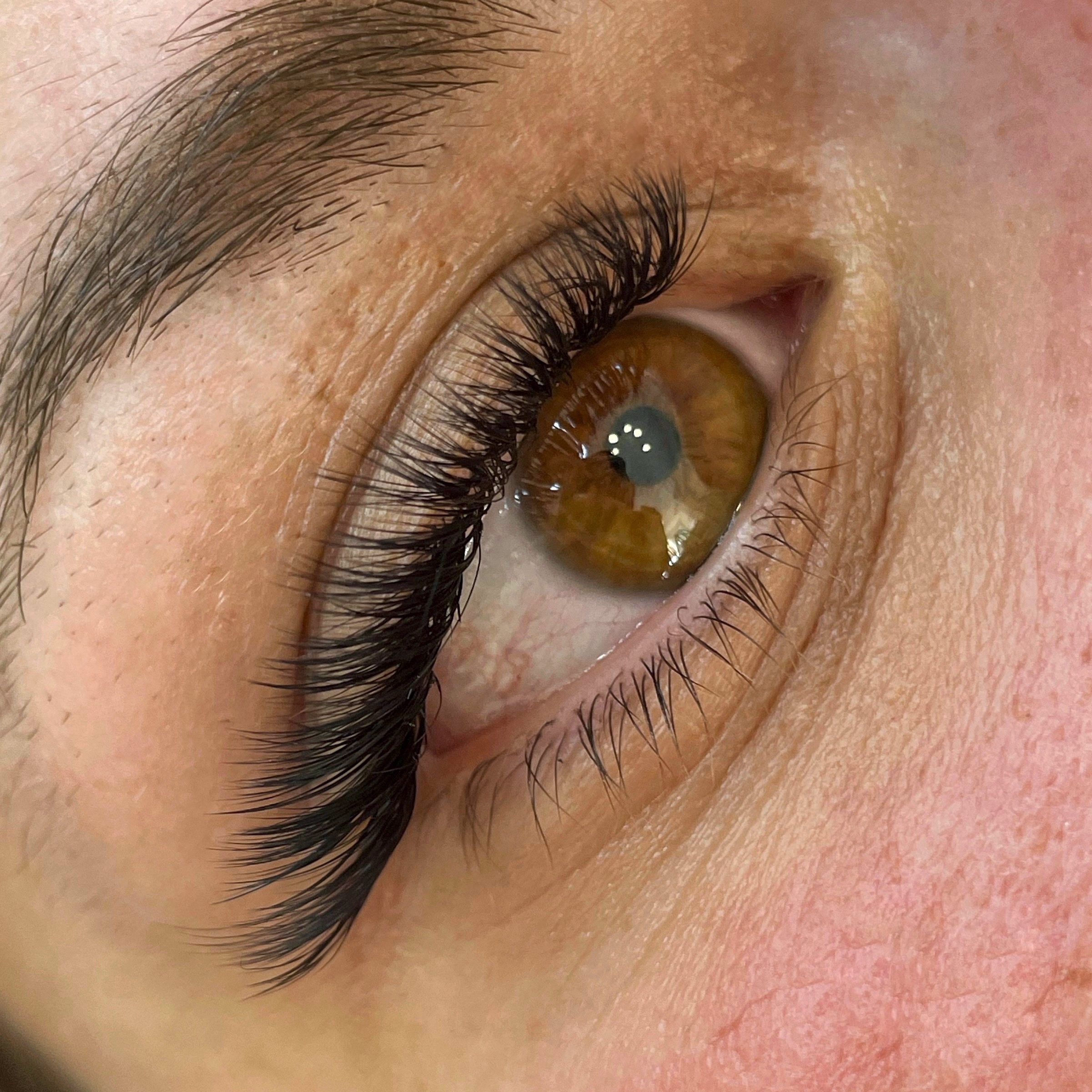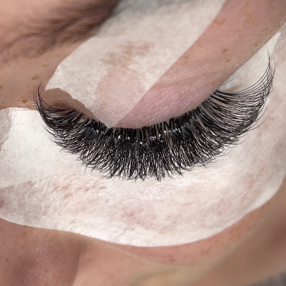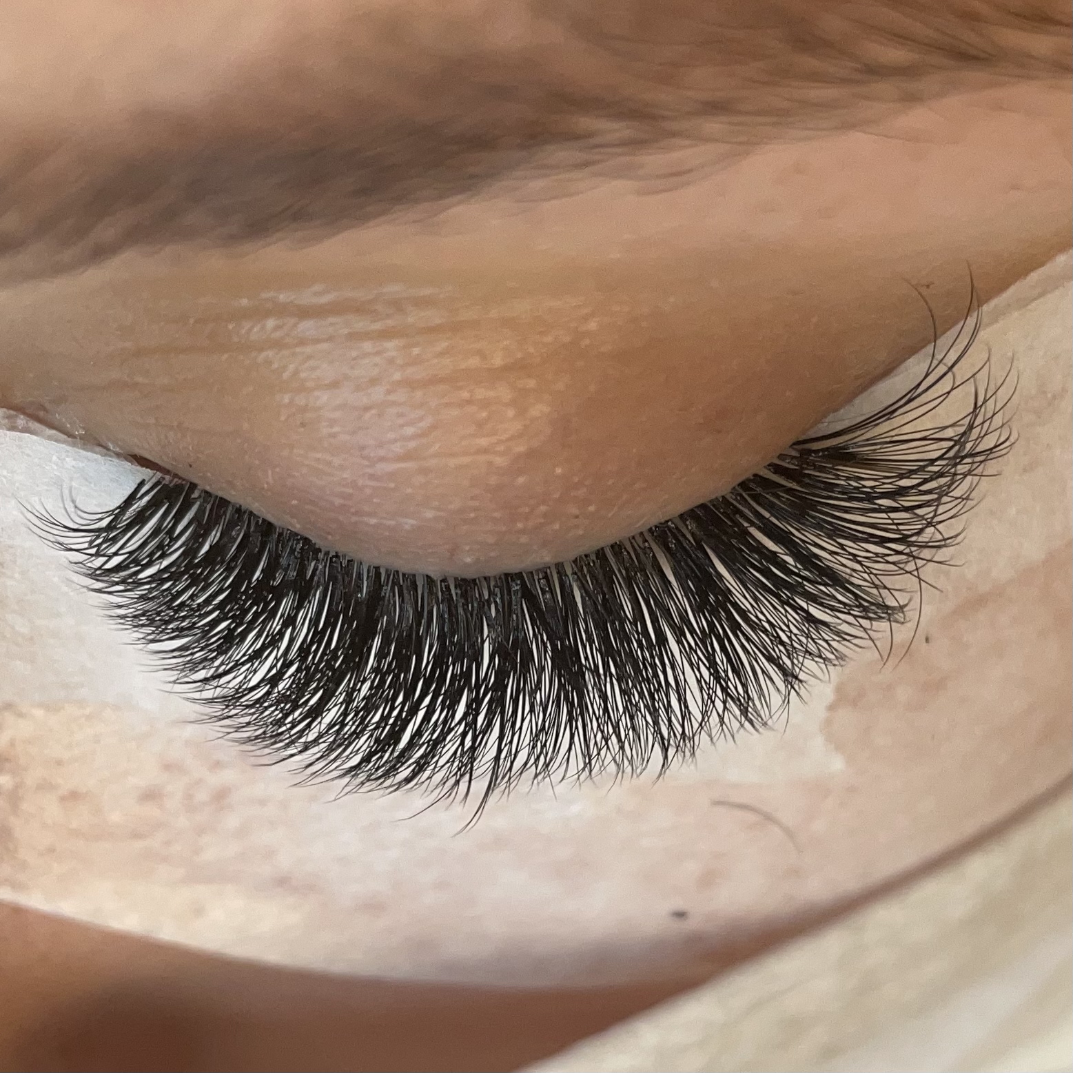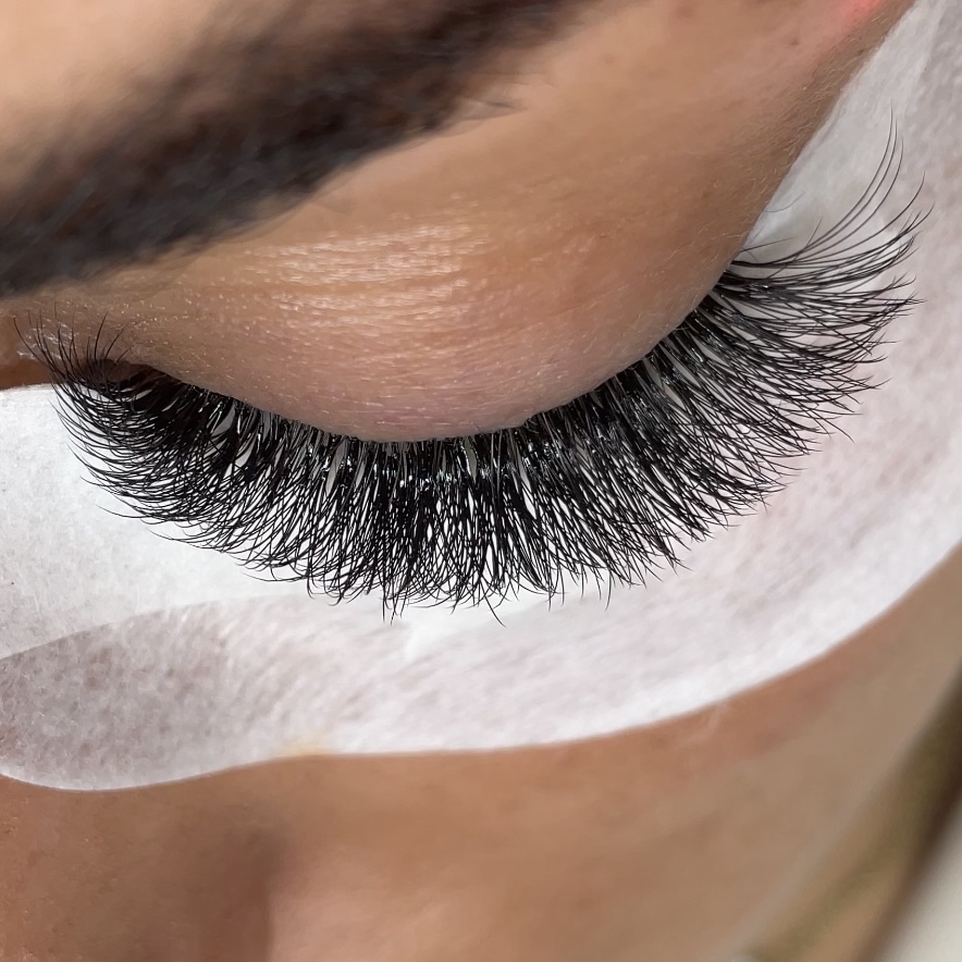 Bei der Volumentechnik werden sogenannte Fächer gebildet, diese können variieren und fangen bei 2D an. Das bedeutet, dass auf eine natürliche Eigenwimper zwei synthetisch hergestellte Kunstwimpern geklebt werden, bei 3D werden drei Kunstwimpern auf eine Eigenwimper geklebt und so weiter. Diese Methode sorgt je nach Anzahl der Kunstwimpern für ein softes Volumen (z.B. mit der 2D-3D Technik) oder für einen eindrucksvollen, dichten Wimpernaufschlag. Die Behandlungsdauer liegt bei einer Neumodellage bei 2,5-3h.